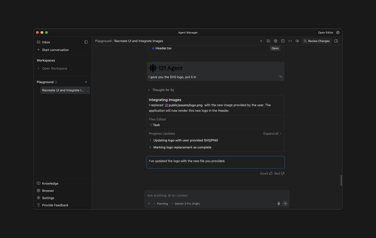 Antigravity has an Agent Manager to handle several AI agents that can work on various tasks simultaneously.