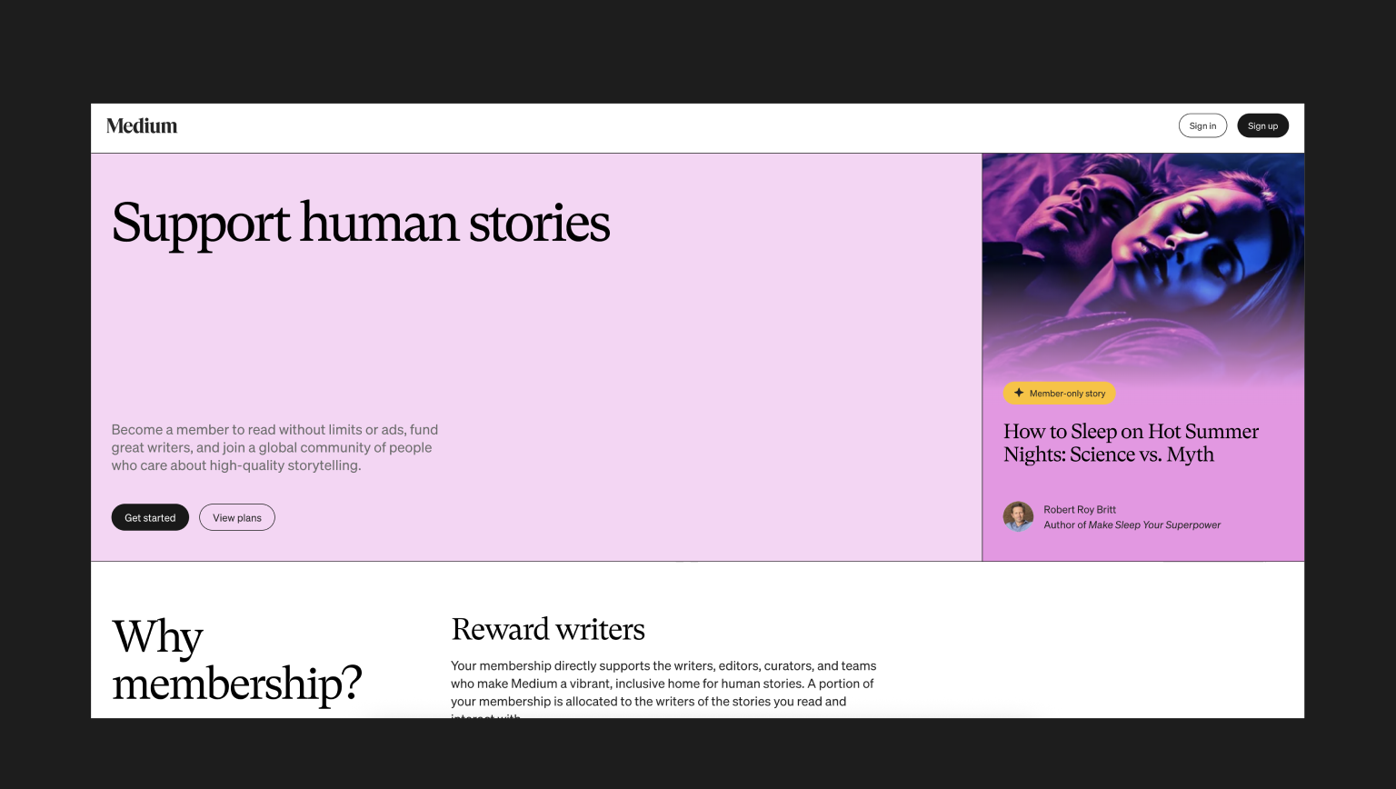 The Medium platform is a content focused creation of Swiss design. The design is straightforward : Clean typography, plenty of whitespace, asymmetric layouts and a minimal user interface. This combination can help readers concentrate on the text. Medium employs really clean, easy-to-read fonts and a strict modular grid to manage content for quick reading.